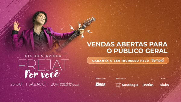 Brasília será palco de uma noite especial agora em outubro, no Mês do Servidor, com o show do cantor Frejat. O show acontece no dia 25 de outubro, no Pavilhão de Exposições do Parque da Cidade, com previsão de abertura dos portões às 20h. Os valores do primeiro lote são de R$ 140 (inteira) e R$ 70 (meia-entrada), disponíveis até 9 de outubro ou enquanto durar o estoque no Sympla: https://sindilegis.org/4pMlU9X