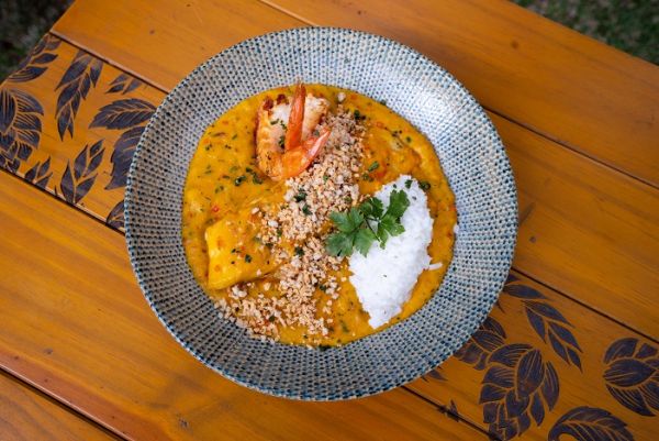 Bobó de Peixe e Camarão com Mandioquinha e Arroz de Coco, assinado pela chef Elisa Fernandes